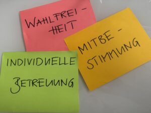 Von Themen wie der freien Wahl der Wohnform oder der Mitbestimmung bei der Wahl der Bezugsperson, bis hin zu zur Möglichkeit, einfach mal vor dem Fernseher Znacht essen zu können… Die Bedürfnisse der Direktbetroffenen sind vielfältig!